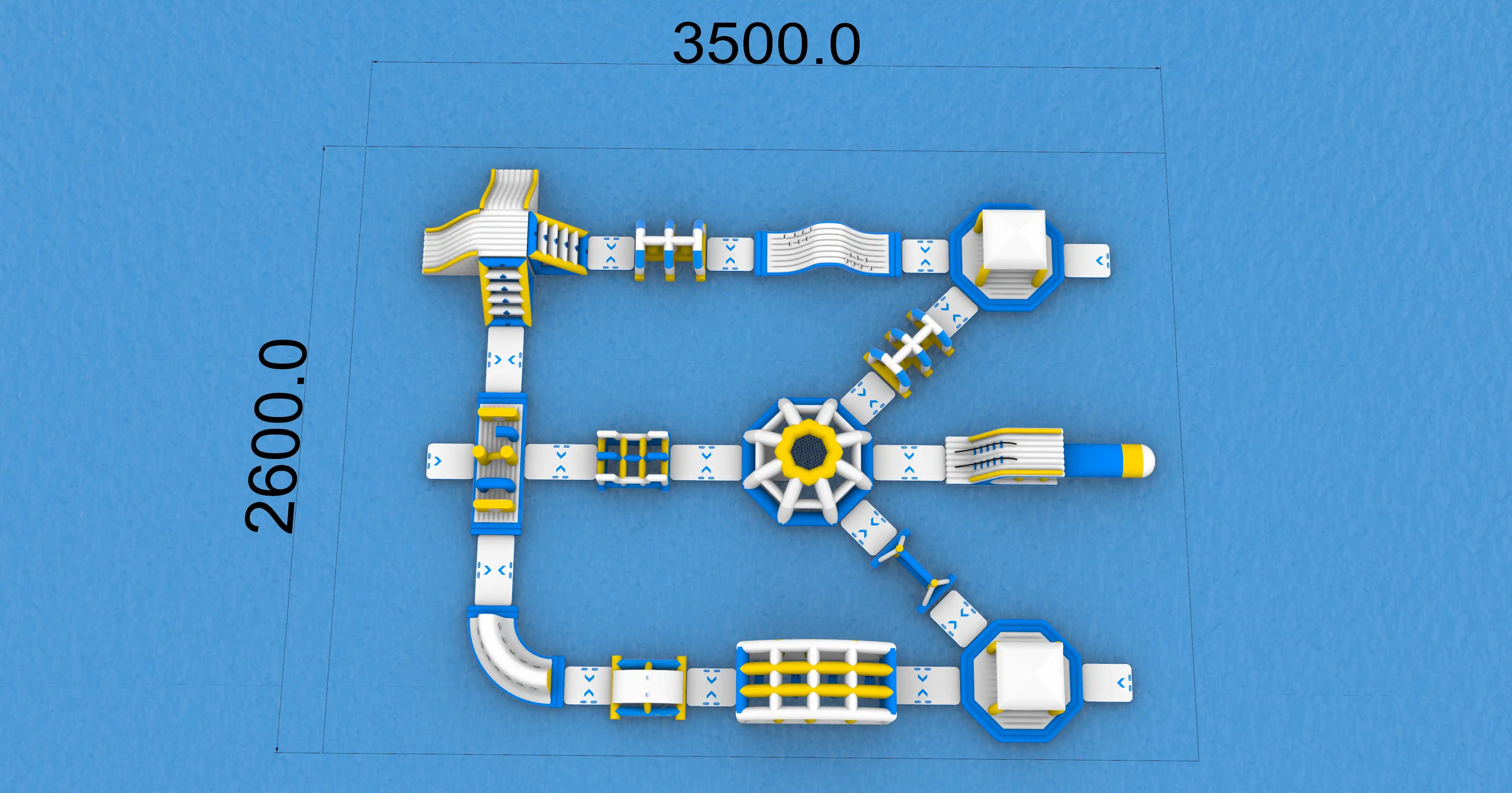 Welcome to a new era of ultimate family entertainment! Our 35m x 26m inflatable water park is designed for families and tourist attractions seeking the ultimate in fun. Featuring a striking large inflatable slide, this inflatable park also incorporates our signature photorealistic 3D scene rendering technology, creating an unprecedented immersive experience for guests.