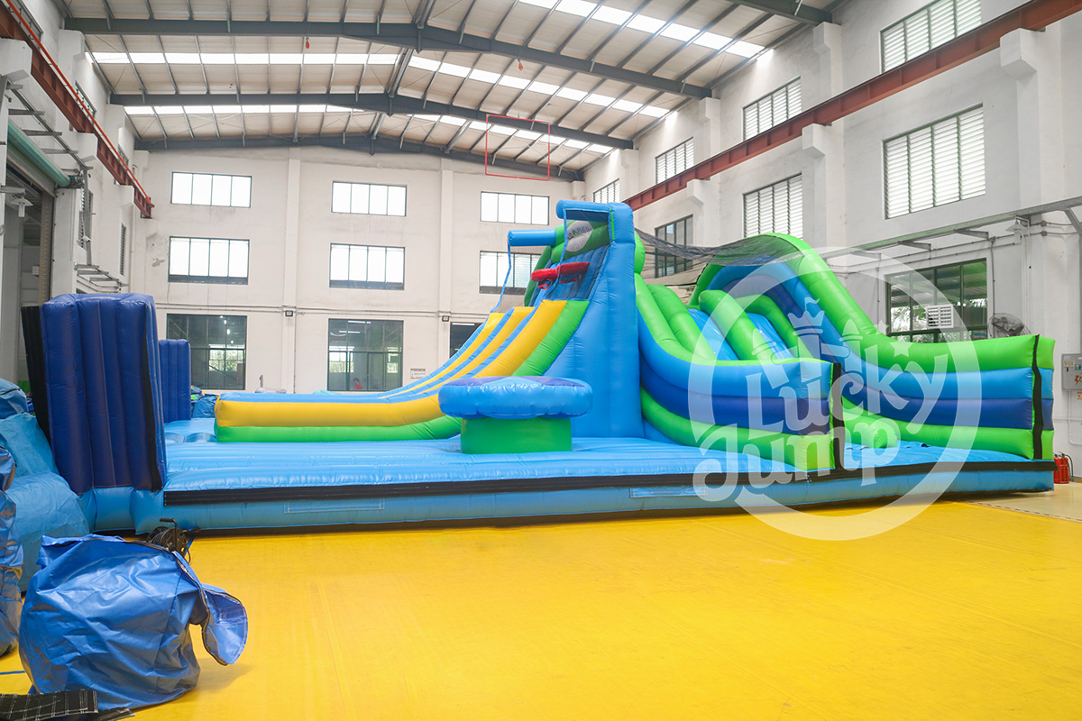 Thrilling Blue, Green, and Black Inflatable Park