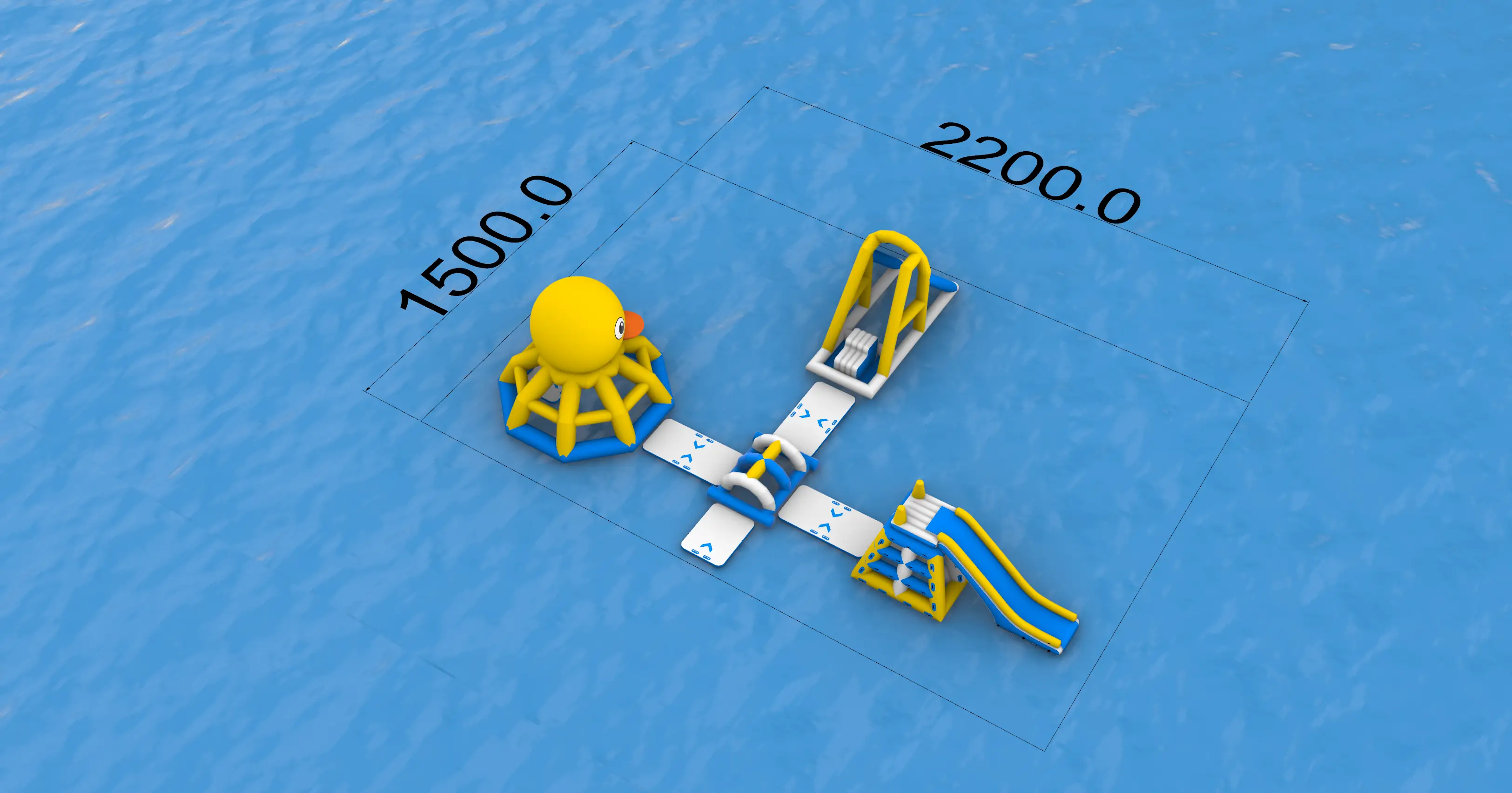 Environmentally Friendly Yellow Duck Inflatable Water Park with Realistic 3D Scene Renderings